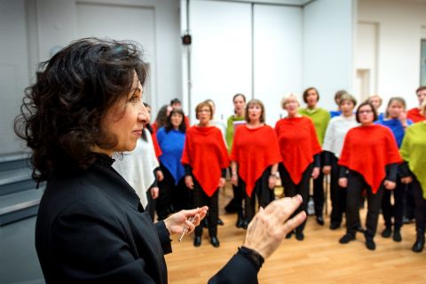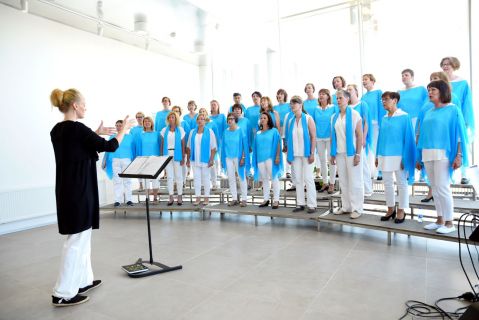 Här QuinnTon på Vasa Elektriska under Vasa körfestivalen, maj 2018 med dirigenten Linda Rönnholm. Foto; Björn Yrjans