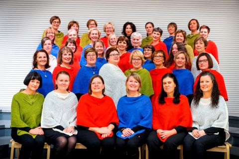 Damkören QuinnTon januari 2025, dirigent Monica Heikius. Foto Camilla Andersson.